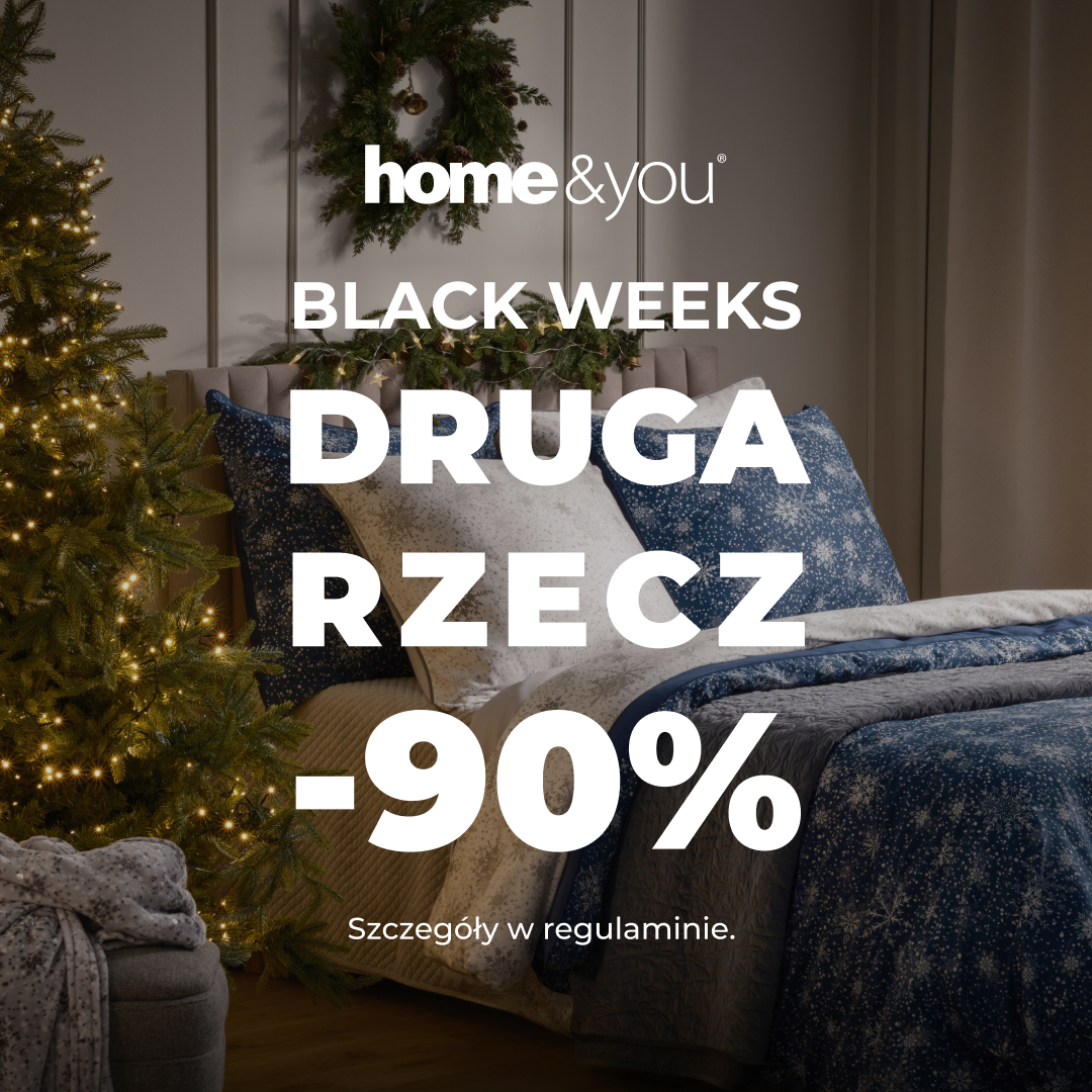 Black Weeks w salonach home&you! Trwa promocja DRUGA RZECZ -90%, a w niej czekają piękne dekoracje, dodatki, tekstylia i akcesoria w szerokiej ofercie! A za każde wydane 100 zł zyskasz BON 150 zł na następne zakupy! Szczegóły w regulaminie i na home-you.com